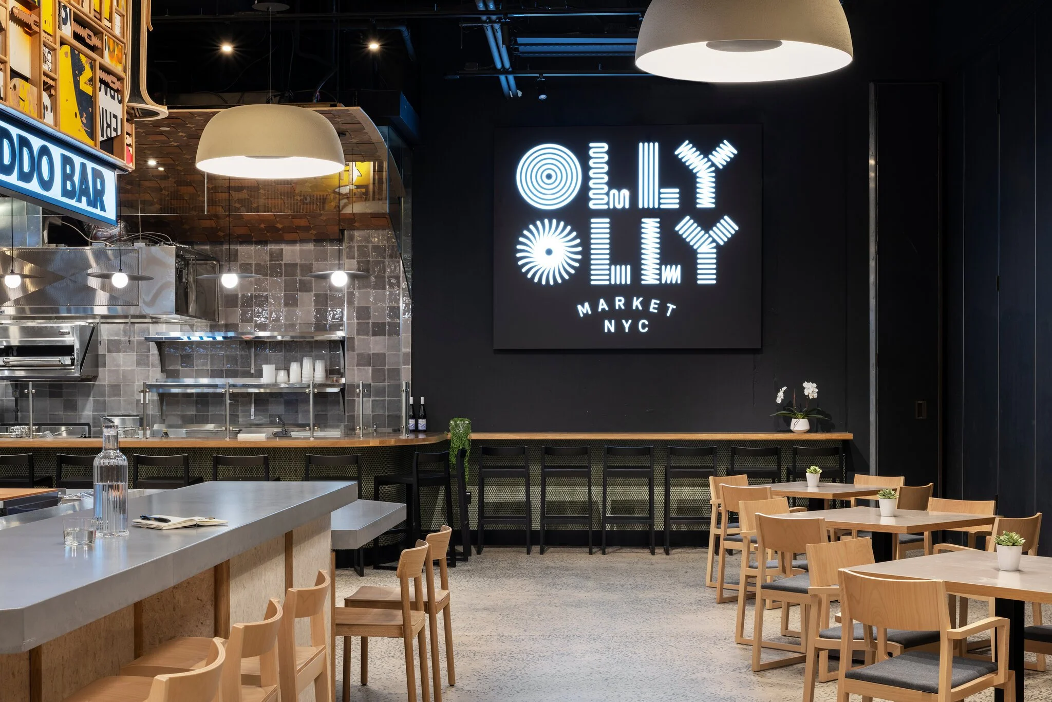 The Olly Olly Market inside Chelsea’s landmarked Starrett-Lehigh Building is a 17,000-square-foot food hall located within the 1931 former freight terminal at 601 West 26th Street, offering international cuisine, cocktails, and a coffee bar. Bar Avant, serving primarily aperitifs and light alcoholic beverages. Bar Aprés juxtaposes Avant, with dark wood and velvet accents tucked away into a secluded corner of the food hall. The bar will offer classic cocktails and absinthe service.